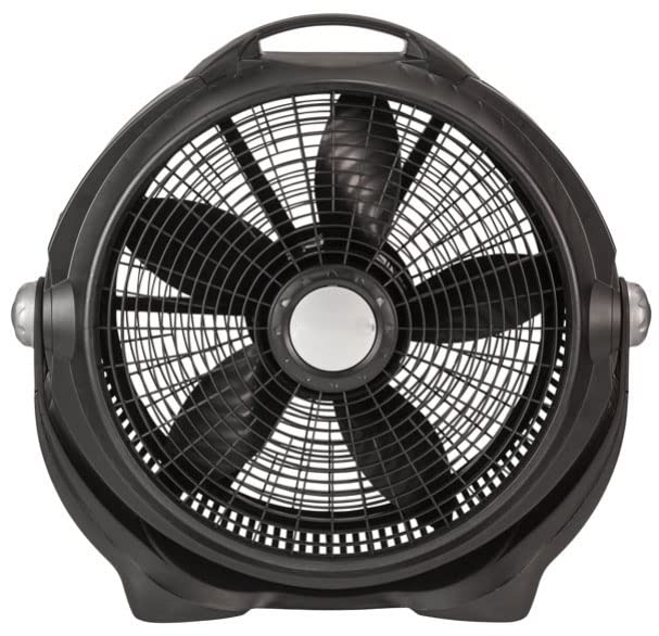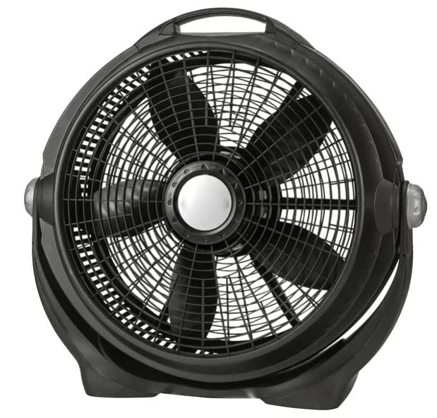 Details: The 20" Wind Machine, in black, lets you enjoy a cooling breeze in larger spaces and rooms. Ideal for powerfully circulating air, this high performance portable fan offers 3 speeds and a pivoting head so you can set it to the speed and angle you desire. You can even place it directly in front of air conditioning vent to quickly circulate air conditioning and boost your chill factor. This portable fan features a built-in, easy-grip handle so it's simple to transport around your home, business or job site. Durable plastic construction makes it lightweight and immune to rust so you can use it in humid conditions. Equipped with trusted, safety fuse technology, making this fan a safe and an energy-efficient choice. The rugged design is strong enough to last you for a long time. 1-year limited warranty.