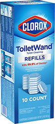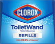 Details: Clorox ToiletWand Disinfecting Refill Pack has disposable cleaning heads with preloaded Clorox Toilet Bowl cleaner to kill germs, disinfect and eliminate odors with ease. The toilet wand system with a sponge-like head cleans the hard to reach areas under the bowl rim. These disinfecting cleaning heads will power through stains while killing 99.9% of germs like staphylococcus aureus, salmonella enterica, rhinovirus type 37 and influenza A. Just click the wand into a refill head, swish around the bowl to release the cleaner, scrub and toss the head away into the trash when done. Cleaning is a breeze with the Clorox ToiletWand Disposable Toilet Cleaning System.