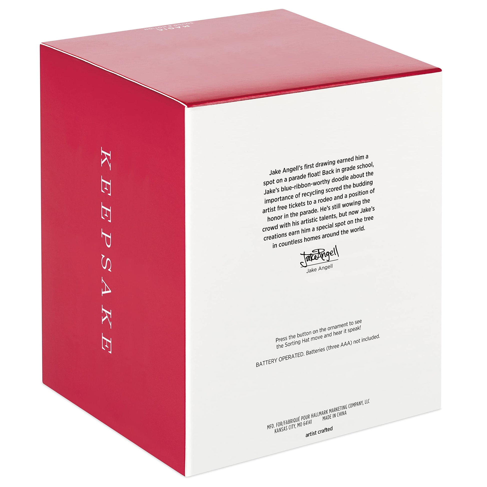 Details: "There’s nothing hidden in your head the Sorting Hat can’t see..." Relive the Sorting Ceremony, one of the most eagerly anticipated traditions for first-year students at the Hogwarts School of Witchcraft and Wizardry. This Christmas tree ornament features the famous Hogwarts Sorting Hat, which moves and says lines about each house: Gryffindor, Slytherin, Ravenclaw and Hufflepuff (battery-operated). With unparalleled artistry and exceptional detail, Hallmark Keepsake Christmas ornaments are perfect for preserving precious memories, commemorating special milestones and celebrating individual hobbies and interests. Hallmark has been your family-owned creator of greeting cards, Christmas ornaments, gifts, wrapping paper and more for over 100 years. We take deep pride in helping individuals connect in just the right way. WIZARDING WORLD characters, names and related indicia are © & ™ Warner Bros. Entertainment Inc. WB SHIELD: © & ™ WBEI. Publishing Rights © JKR. (s22)