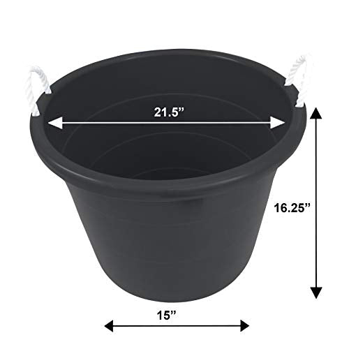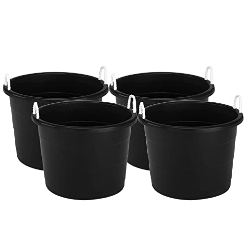 Homz 0417BKDC Plastic 17 Gallon Utility Storage Container Bucket Tub with Rope Handle, Black, Set of 4 Buckets