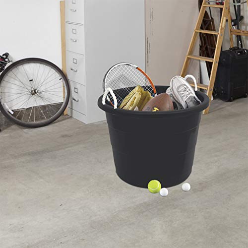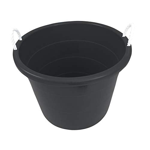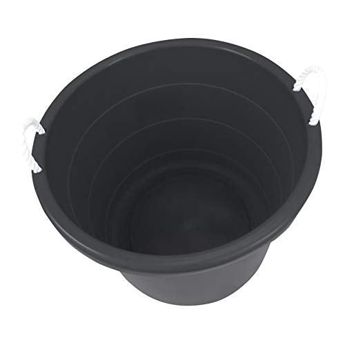 Details: Description When you want a versatile storage container for around the house, look to the Homz 17-Gallon Plastic Utility Tub 4-Pack. This plastic storage tub is great for storing items around the house and garage, as well as for indoor and outdoor storage. Stash toys inside this plastic tub or use it as a laundry basket. You can even use this large plastic tub as an ice cooler for outdoor parties. With 17 gallons of space inside, you can use this storage container for just about anything. Overall, this plastic storage bucket measures 21.5 inches in diameter and 16.5 inches tall. The durable plastic makes this storage bucket great for indoor and outdoor use. Easily carry the plastic bucket around with the nylon rope handles. When you're not using the storage bucket, you can nest other buckets inside of it for compact storage. Keep items neatly stored anywhere inside or outside your home with the Homz 17-Gallon Plastic Utility Tub 4-Pack.