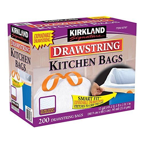 Details: Kirkland Signature Drawstring Kitchen Trash Bags - 13 Gallon, 200 Count (2 Pack)
