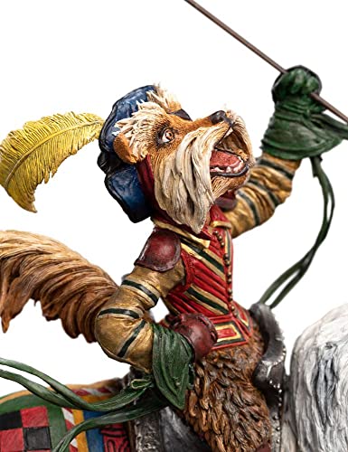 1:6 scale Limited Edition of 700 worldwide Portrays the gallant knight Sir Didymus on his cowardly steed Ambrosius Physically sculpted by Weta Workshop sculptor Jane Wenley Incredible details, from intricate filigree to minute buttons; • Clutching his mighty baton, raised in triumph Ambrosius wears a uniquely designed blanket Perched upon the cracked stonework that makes up the infamous Labyrinth Made from high-quality polystone.