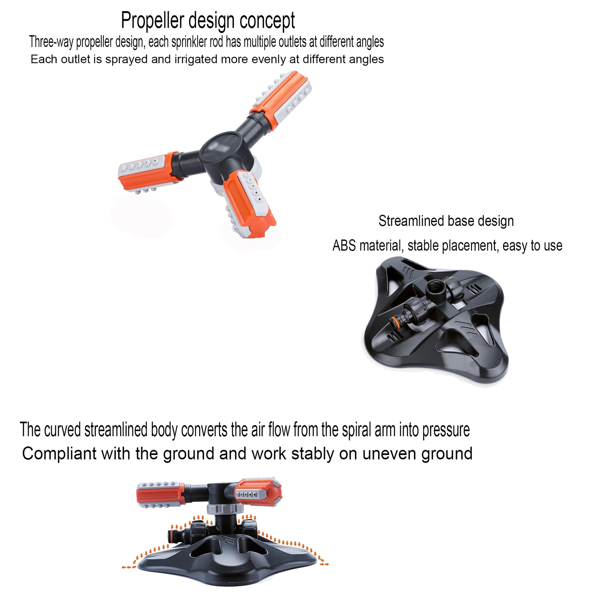 • General: The automatic lawn sprinkler can be used for lawn, agriculture, nursery and grass irrigation, and is compatible with watering and cooling systems for homes, gardens, yards, roads, and greenhouses. It can also be used for children's play time. Let it spin and let your kids have fun!