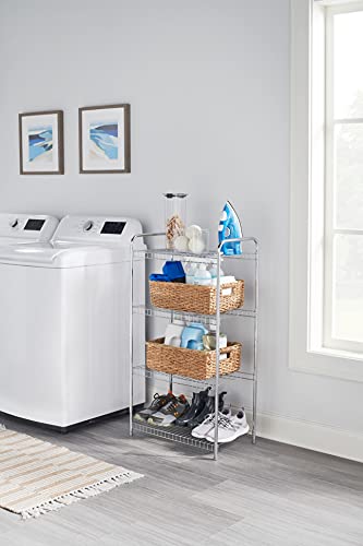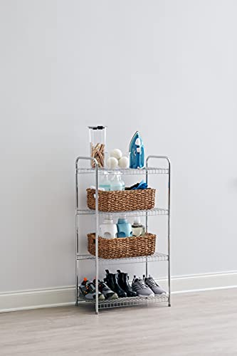 - DURABLE: Includes four durable shelves and is constructed of sturdy metal for lasting storage throughout the home