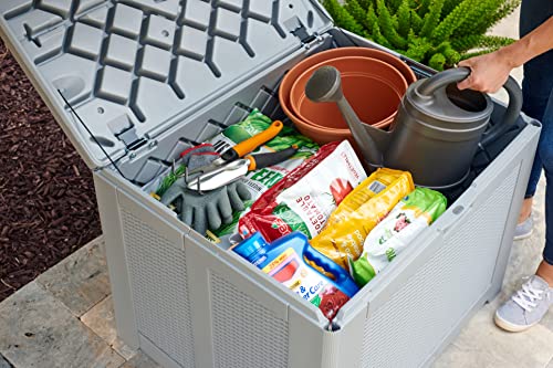 - AMPLE STORAGE SPACE: 74 gallon capacity is ideal for storing items such as grilling accessories, cleaning supples, gardenening items and more