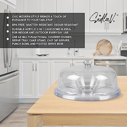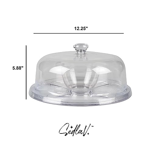 SEDLAV 12'' Acrylic Cake Stand with Dome Cover - Cake Carrier with Lid and Handle, Cake Stands, Glass Cake Stand with Dome, 6 in 1 Multi-Functional Serving Platter