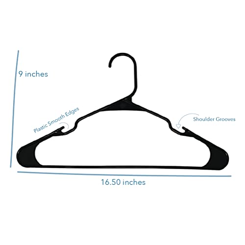 SEDLAV Black Hangers Set with Built-in Shoulder Grooves – Reinforced Plastic Edges for Stability and Support, Slim Design, Plastic Smooth Edges for Hanging Thin Strap Shirts, t-Shirts, Blouses