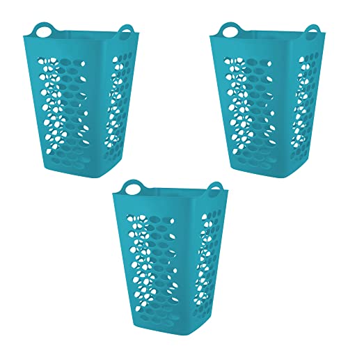 SEDLAV Flexible Plastic Square Laundry Hamper, 3 Pack, Teal