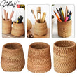 SEDLAV Handwoven Rattan Pen Holder & Organizer - Stylish Stationery & Makeup Storage- Multi-Functional Woven Basket