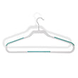 - Convenient packs of White & Teal Plastic Hangers with Non-Slip Rubber.
