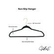 - Durable and Sturdy Structure - Our black hangers are strong enough to hold 10 pounds and feature a non-slip velvet design with chrome finishing, ensuring your clothes stay securely in place. No-shed velvet coating keeps your closet clean