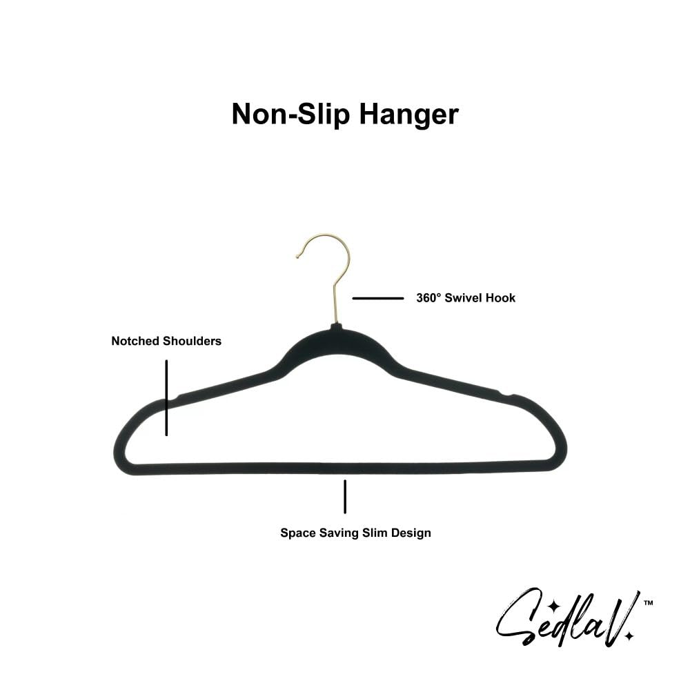 - Hangers Space Saving Design - SEDLAV Premium Velvet Hangers feature ultra-slim, lightweight construction at 0.24 inches thick, making them a good space saving hangers for your closet. Ideal for suits, shirts, dresses, and more!