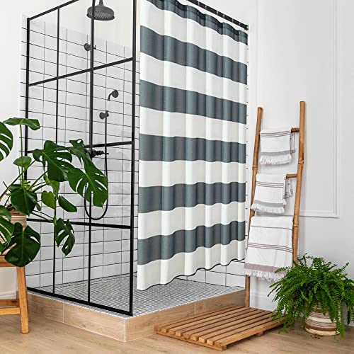 Details: With this SEDLAV curtain you can give your bathroom a striped style! This shower curtain is made of 100% polyester microfiber to make it durable and fresh. With this resistant material you can have a bathroom curtain for a long time. At the top it has 12 holes that adapt to any type of hook (not included) to hang it in the shower or bathtub. The dimensions of the curtain are 72" x 72", this is a standard size for any type of bathroom. It is suitable for machine washing.