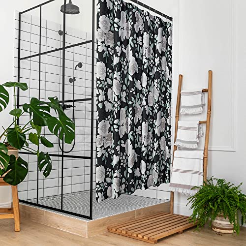 SEDLAV Shower Curtain Flowers, 72" x 72", Shower Curtains, Shower Curtain Set, Shower Curtains for Bathroom (Black and Gray)