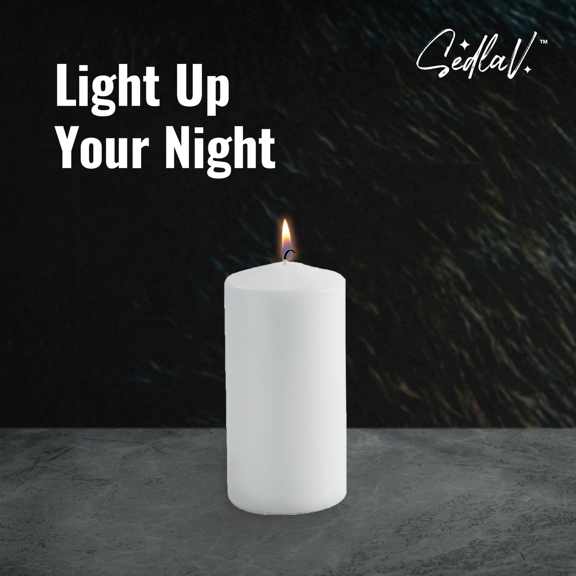 SEDLAV White Pillar Candles 6-Pack - Pillar Candles Bulk, Pillar Candles Set of 6, 6"x3" Unscented, Dripless, Smokeless - Great for Decorative Centerpieces, Mantel Decoration