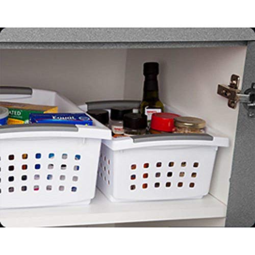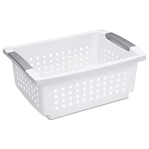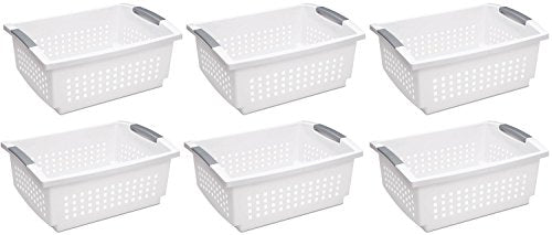 Sterilite 16628006 Medium Stacking Basket, White Basket w/ Titanium Accents, 6-Pack