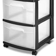 Details: Description Keep your things organized with these 3-Drawer Storage Carts from Sterilite. These are the supreme storage carts for any room in your home or office. This package includes 8 carts. This pack of carts come with deep drawers to accommodate anything and everything from scrapbooking materials, school supplies, clothing, books, and so much more. These storage carts are multi-purpose and encompass a wide array of storage opportunities. Organization is a walk in the park with this rolling cart, offering easy transportation. Ergonomic handles provide a secure grip when you're on the move. The transparent drawers allow you to see your items and keep your belongings neatly contained. Black frames complement any space you use your storage carts and casters are included to create portable storage solutions wherever they may go. Get this 8-pack of 3-Drawer Storage Carts from Sterilite and watch the organizational magic happen. This package is perfect for a closet, craft room, garage, office, or kid's room.