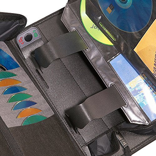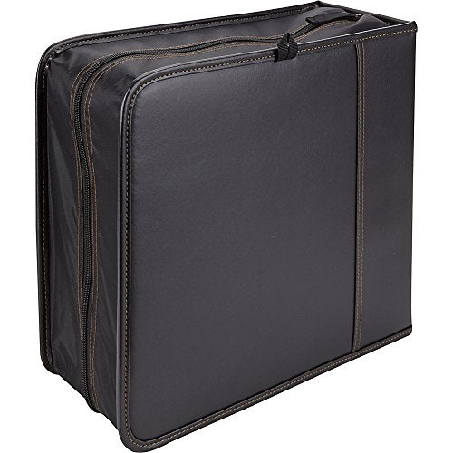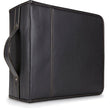 Details: 320-CD Koskin Media Wallet liHolds 320 CDs or 160 with liner notesliThick leather-like koskin material with extra paddingliProSleeves for disc protectionliConvenient carrying handle with easy-view spine labelliQuick Lock Moveable Page System for easy transportation and organizationliFast-File pockets provide storage for 16 additional CDsli11 1/2" W x 13 3/4" H x 5 1/2" D.