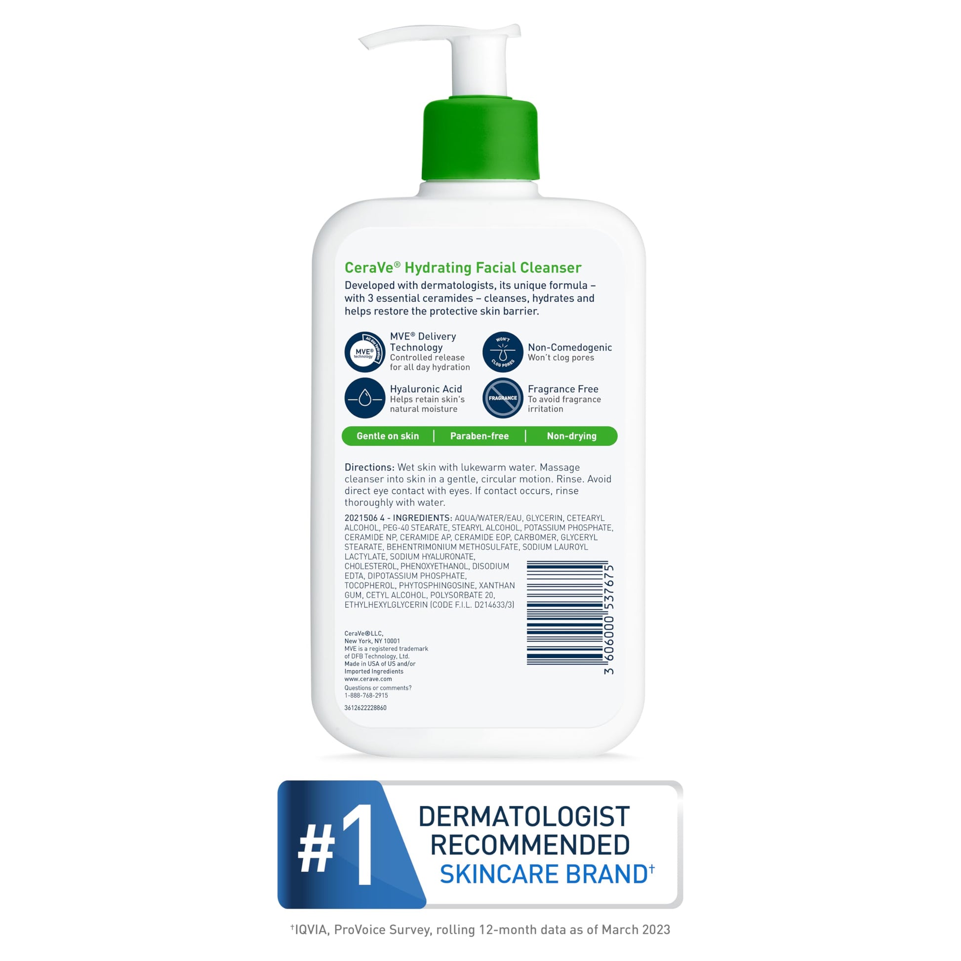 Details: Developed with dermatologists, CeraVe Hydrating Facial Cleanser is a unique formula that cleanses, hydrates and helps restore the protective skin barrier with three essential ceramides (1, 3, 6-II). The formula also contains hyaluronic acid to help retain skinâs natural moisture. This hydrating facial cleanser was designed to cleanse and refresh the skin without over-stripping it or leaving it feeling tight and dry.