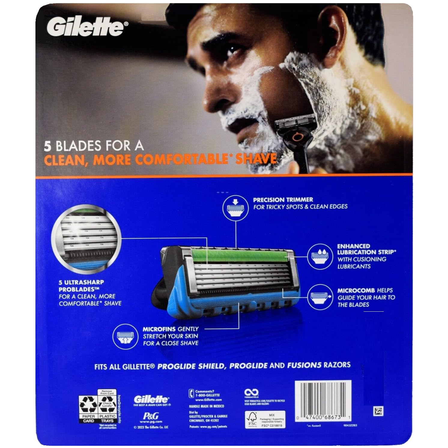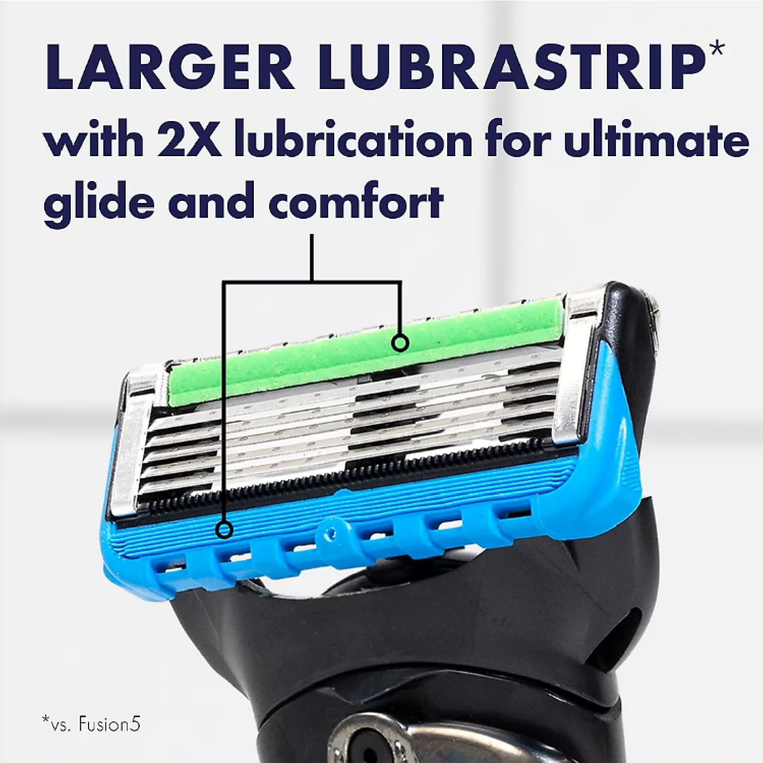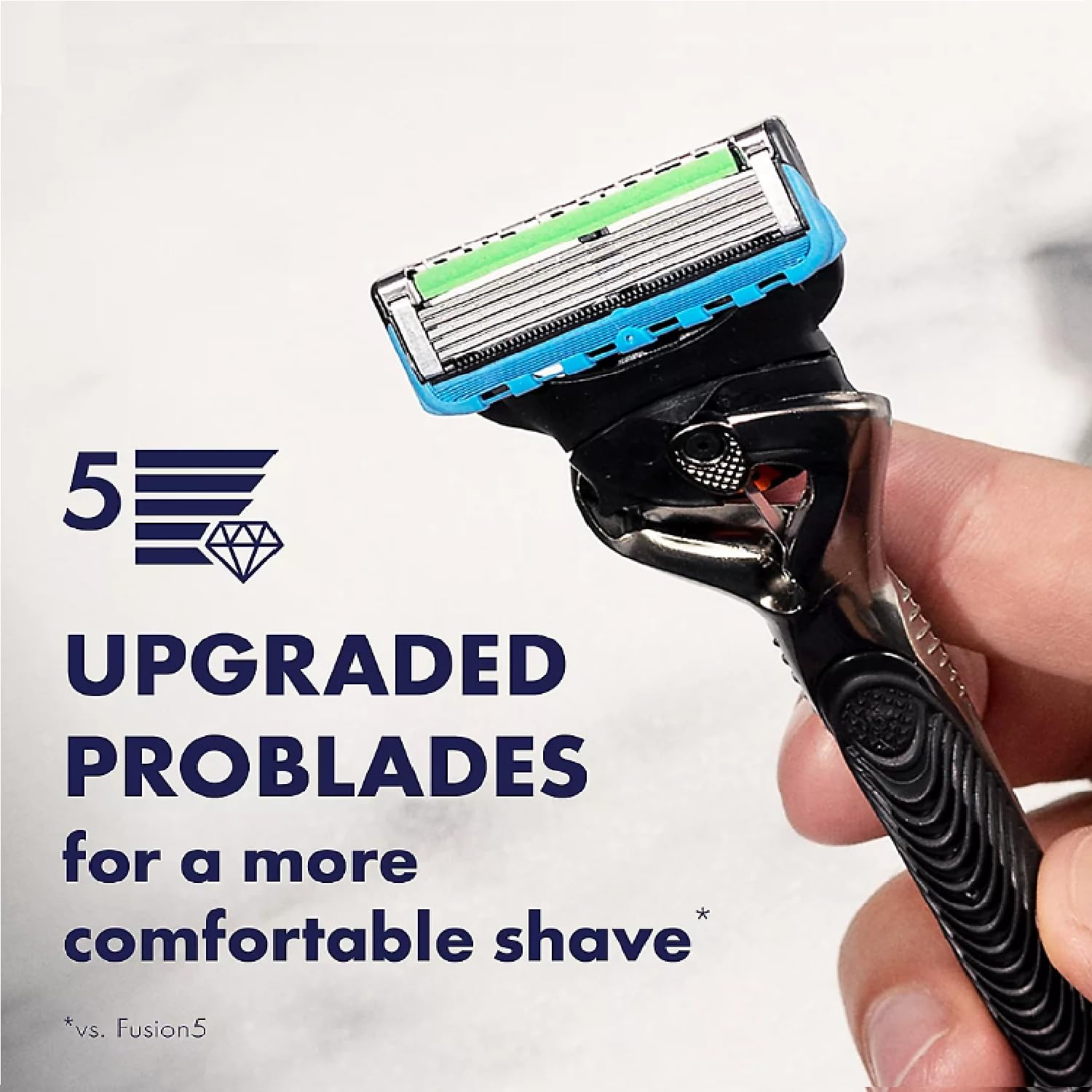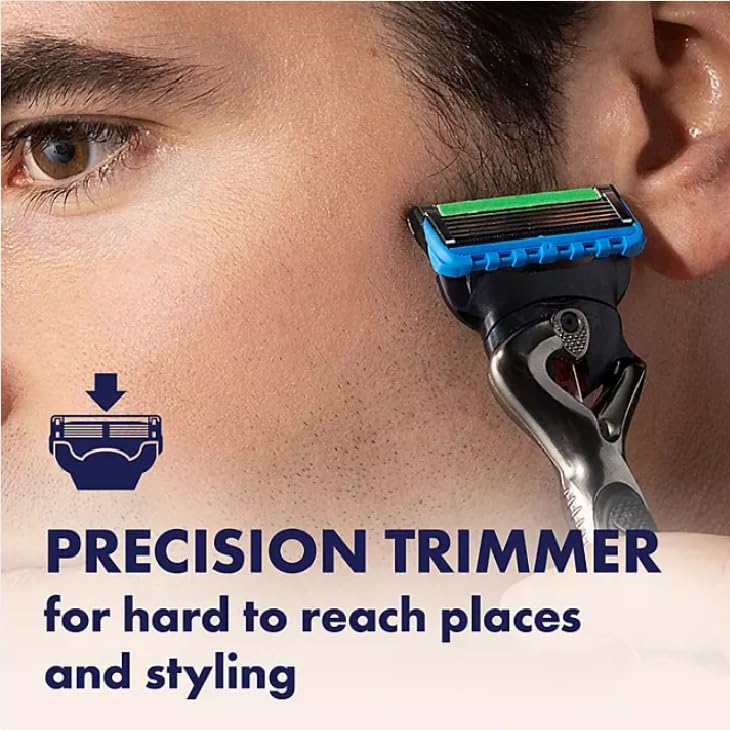 Details: The Gilette Pro Glide razor for men provides the iconic Gilette shave precision with comfort and style. This 5-bladed men's razor with FlexBall features a larger lubrication strip for added comfort and glide to your shave. This enhanced Lubrastrip also fades when you are no longer getting an optimal shave. The handle’s FlexBall technology responds to your facial contours, and the blade cartridge features 5 anti-friction blades for a shave you can barely feel. Our simple yet effective blade stabilization maintains optimal blade spacing for comfort while allowing the blades to adjust to the contours of your face. The Precision Trimmer on the back is perfect for styling facial hair, especially in these hard-to-reach areas such as under the nose and the sideburns. With soft microfins that gently stretch and smooth your skin and a microcomb that helps guide your hair for a close shave from our thinnest blades. Our ultra-sharp, anti-friction razor blades ensure a smooth shave, fitting all Gilette 5-blade razor handles (excluding GiletteLabs). Pro Glide refills can last up to one month.