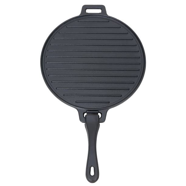 - The griddle includes a removable handle for easy storage, a true space saver! All cookware pieces are pre-seasoned with natural plant oil for a superior cooking surface.
