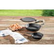 - Cast iron cookware can be used on induction, ceramic, electric and gas cooktops, oven, grill, or over campfire