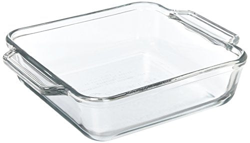 Details: Description Oven Basics 8-Inch Square Glass Bake Dish-set of 3 all the same size. Anchor Hocking Oven Basics bake ware is classic in shape, bakes evenly and cleans easily. The oversized capacities are perfect for cooking and re-heating . Safe for oven, microwave, refrigerator, freezer and tabletop! . Made of Soda Lime Glass in the United States. Dishwasher safe.