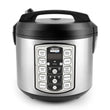 This convenient cooker's generous capacity perfectly cooks 4 to 20 cups of any variety of rice with specialized functions for both White and Brown Rice. Once the rice has finished, it will automatically switch to Keep-Warm so there's no need for monitoring or stirring. The Steam Tray allows for healthy steaming of meats and vegetables, even as rice cooks below! Need rice in a pinch? Save time with the Quick Rice function which cuts cooking time by up to 50%. AROMA's Slow Cook function transforms your rice cooker into a 4-quart slow cooker, furthering its use as a meal-making powerhouse. With AROMA's patent-pending Saut?-Then-Simmer STS function you can further automate your kitchen. Reaching a high heat to saut? or brown foods then switching over to a simmer once liquid is added, this time-saving function is the perfect choice for Spanish rice, chili, risotto, packaged meals and much more! The programmable 15-hour delay timer is great for families on the go, delivering delicious rice ready when it's needed. And when the cooking is done, the inner cooking pot and all accessories remove for easy cleanup in the dishwasher. BPA free
