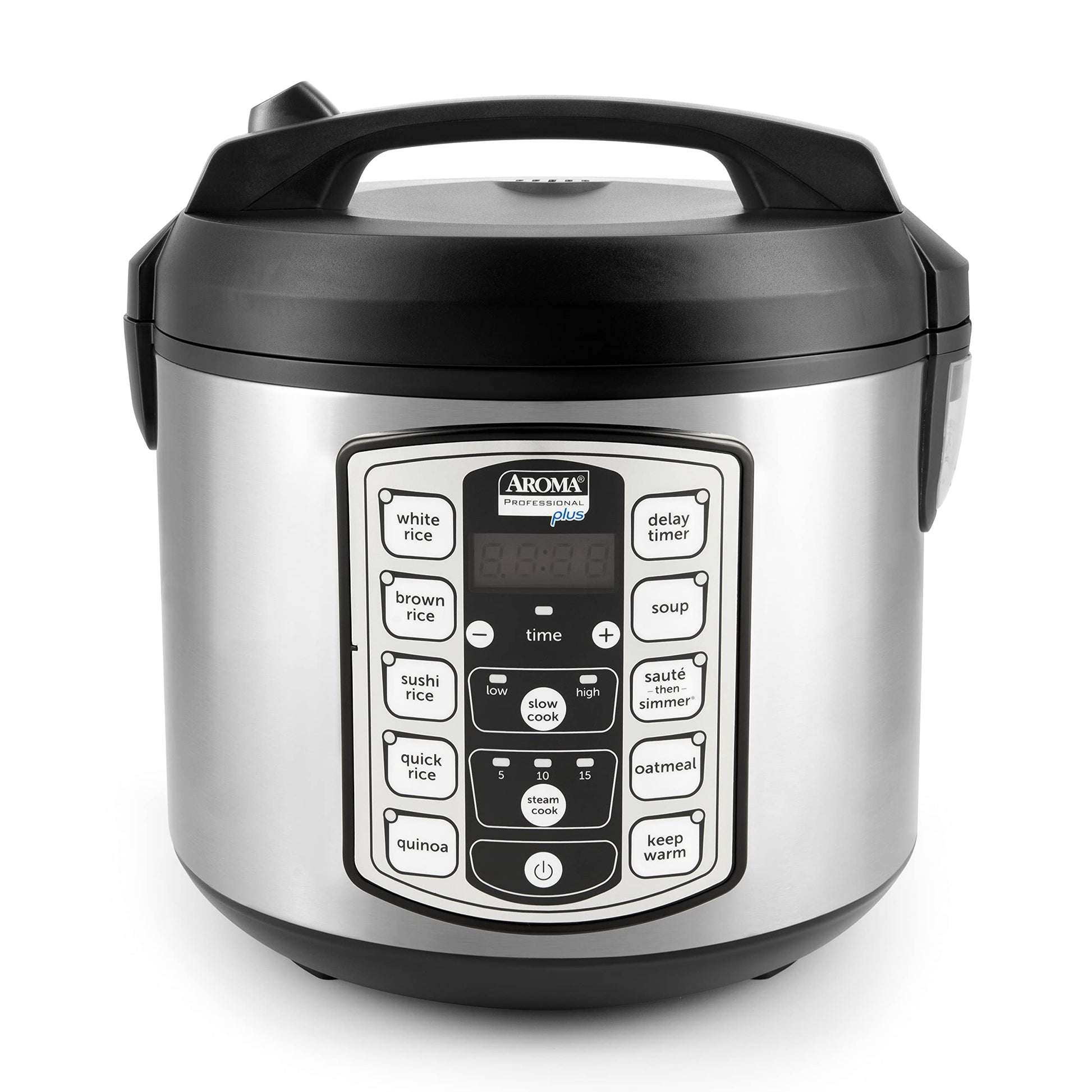 Aroma Housewares ARC-5000SB Digital Rice, Food Steamer, Slow, Grain Cooker, Stainless Exterior/Nonstick Pot, 10-cup uncooked/20-cup cooked/4QT, Silver, Black