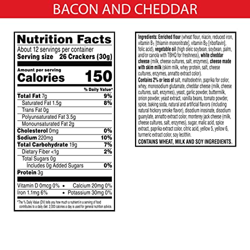 - Light and crispy Cheddar crackers and savory Bacon-flavored crackers combine for a mix of cheesy goodness in every box