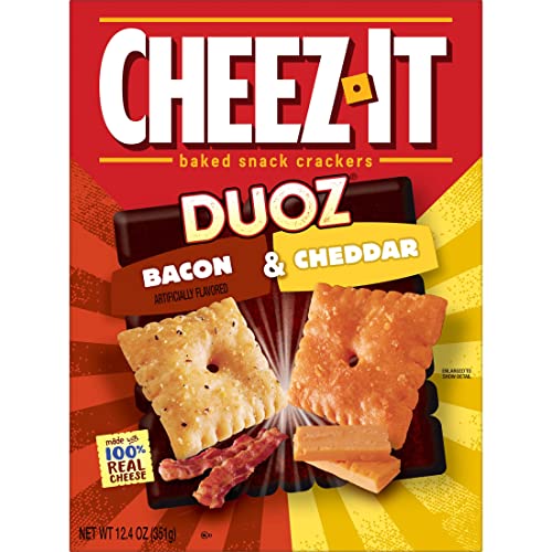 Cheez-It DUOZ Crackers, Baked Snack Crackers, Office and Kids Snacks, Bacon and Cheddar, 12.4oz Box (1 Box)