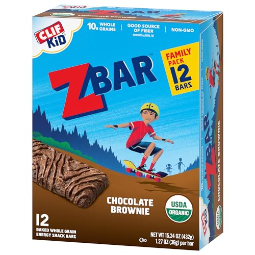 CLIF Kid Zbar - Chocolate Brownie - Soft Baked Whole Grain Snack Bars - USDA Organic - Non-GMO - Plant-Based - 1.27 oz. (12 Pack)