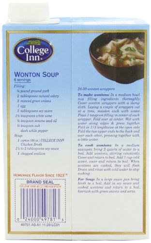 Details: When we make a College Inn broth, we put in only the highest quality ingredients. Plump chicken or tender beef. Delicious vegetables. And just the right herbs and spices.
