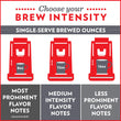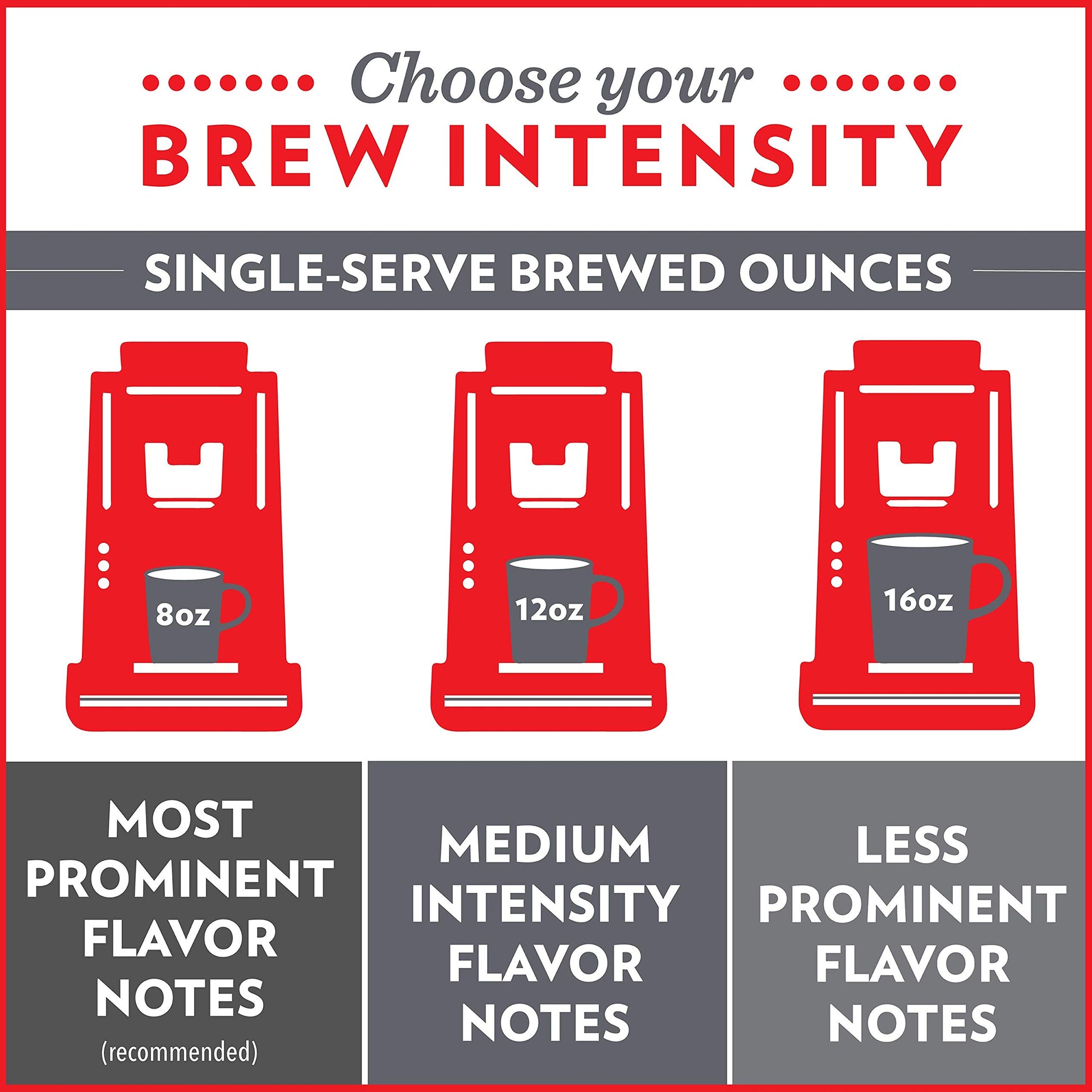 Details: Our single serve coffee pod variety pack features 25 Signature Blend Dark Roast, 25 medium-roasted Breakfast Blend, 25 medium-dark roasted Cafe Special Blend, and 25 House medium-dark roasted House Blend. Made from only 100% select Arabica coffee beans. Signature Blend has a rich, bold flavor that has been a family tradition for four generations. Our Breakfast Blend coffee has an aromatic, medium roast that is sure to awaken your senses and follow with a smooth and bright finish. Created for the finest restaurants, Cafe Special Blend has a full-bodied flavor with a smooth and balanced finish. Our House Blend coffee is roasted to a rich flavor and a smooth, clean finish. Enjoy 100 cups of coffee. Also available in 36 count and 54 count box single serve coffee pods (compatible with Keurig KCup brewers). The roast refers to the temperature which the coffee bean was roasted. The roast determines the flavor of the coffe. Light roasts are described as 'sweet' or 'well-balanced', while dark roasts are intense and lively. The body is the weight of the cofee on the tongue. The brightness (acidity) refers to the tangy quality, liveliness or bright note that highlights the flavor of the coffee.