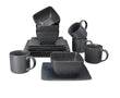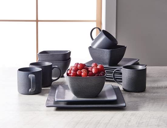 Dark Gray Square-Shaped 16-Piece Dinnerware Set | Made of 100% Ceramic Stoneware | Gray, Large