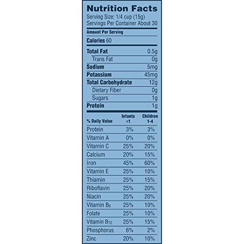Details: When your baby is ready to start solids, try Gerber Rice baby cereal. It has iron to help support learning ability - just 2 servings of baby cereal a day has 90% of your baby's daily value of iron. It also has Vitamin C and 6 B Vitamins for healthy growth and Calcium to help build healthy bones and teeth.