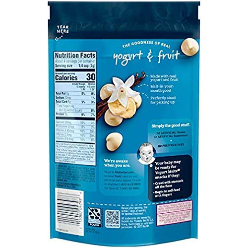 Details: Nourish your little one with the goodness of Gerber Banana Vanilla Yogurt Melts Freeze-Dried Yogurt and Fruit Snacks. These tasty snacks are made with real yogurt and fruit. With live and active cultures and a good source of Vitamins A, C, and E, these snacks combine the delicious taste little ones love with the wholesome nutrition parents love.