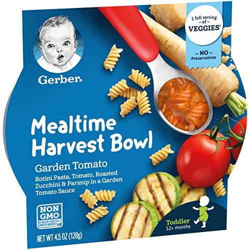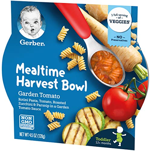 Details: Your toddler will love these easy-to-prepare, tasty, nutritious options for lunch and dinner! Specially prepared to make little mouths smile, our Mealtime Harvest Bowls combine colorful veggies with whole grains or pasta to nourish little ones 12 months and up. Every Mealtime Harvest Bowl nourishes your growing toddler with ¼ cup of colorful veggies to support a balanced diet, with no preservatives or artificial flavors. Your mini me is becoming more independent, and while they might insist on doing everything on their own, that doesn’t mean that you have to. Gerber Mealtime Harvest Bowls make it easy to give them the nutritious foods they need for healthy growth and development. They’ll love the taste, and you'll love recipes that are Non GMO and have no preservatives.