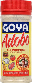 Details: Goya Adobo All Purpose Seasoning with Pepper, 12 Ounce (Pack of 24) | Salt and pepper can stand aside when there’s Goya Adobo around. GOYA Adobo adds super flavor in a flash. This versatile seasoning mix includes the perfect blend of salt and pepper and other Latino spices. We’re sure you’ll love it. GOYA Adobo All-Purpose Seasoning with Pepper is the perfect blend of garlic, oregano, black pepper and Latin spices that adds quick flavor to any meat, chicken, fish and vegetables. Just sprinkle any of our vibrant blends, or our low-sodium versions over meats, poultry, seafood and vegetables before cooking. You can also use it to punch up the taste of sauces and marinades. A simple shake is all it takes! 0g Trans Fat, Gluten Free. If it's Goya ... it has to be good!