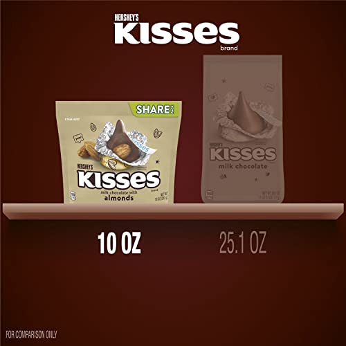 - Contains one (1) 10-ounce share bag of HERSHEY'S KISSES Milk Chocolate with Almonds Candy