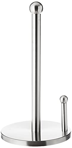 Details: Description Have you ever tried to pull a single paper towel off the roll with just one hand? Go ahead, give it a try—we’ll wait. If you were able to do it, you probably have a standing paper towel holder like this one; if you don’t, you probably need this one. It might look unassuming, with its decor-friendly silver finish. Its real appeal is the small arm that braces the roll so you can tear off one sheet single-handedly, while the knob on top keeps the roll in place.