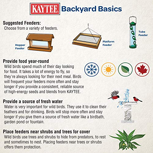 Details: Kaytee Nut & Fruit blend contains a rich mix of seeds and grains with added nut and fruit pieces. Pound for pound, nothing offers more energy than fruit & nuts to meet birds high-energy demands. Wild birds require a lot of energy for flying. Offer them the Kaytee Nut & Fruit Blend to keep them fueled and happy. Pound for pound, nothing offers your feathered friends more energy than fruit and nuts. Kaytee Nut & Fruit Blend wild bird food is a premium mix of healthful seeds, like sunflower and safflower seeds, with added nuts and fruit pieces to appeal to a wide variety of colorful songbirds. This blend is a great high-energy blend that is perfect for year-round feeding and was created to attract cardinals, chickadees, nuthatches, woodpeckers and other colorful songbirds. When offering more than one type of seed blend, place feeders at different heights to avoid conflicts between different types of birds. Always make sure to provide plenty of clean, freshwater. At Kaytee, we know birds about, as well as birds, know birds. With over 150 years of experience, we put the finest ingredients and a genuine love of birds into everything we do.