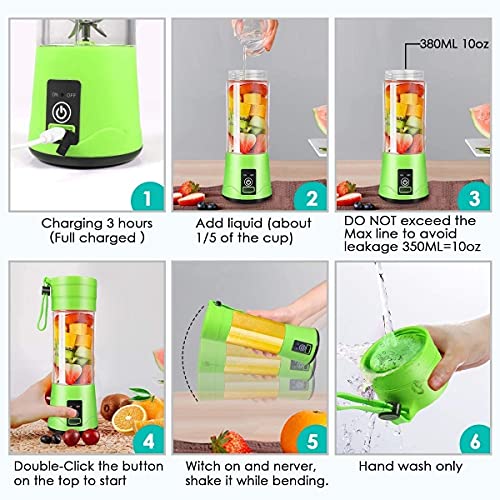 LVGROW Portable Blender, 13oz Six 3D Juice cup, Personal Mixer Fruit Rechargeable with USB, Mini Blender Shakes And Smoothies Smoothie (Green Appearance)