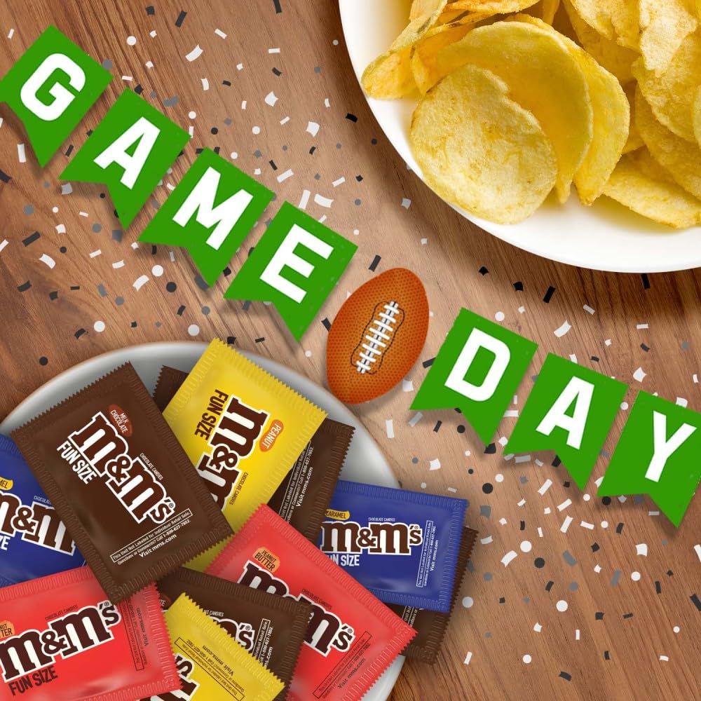 Details: We aim to show you accurate product information. Manufacturers, suppliers, and others provide what you see here, and we have not verified it. See our disclaimer. The NFL big game deserves a big candy spread. So make sure you game plan to have plenty of delicious sweets on hand to share with your squad during this ultimate game-watching, sweet-snack-munching event. Kick off your football game day festivities & tailgating with the official candy sponsors of Super Bowl LVI and M&M's Lovers Variety Mix. This party size pack of bite-size goodies is filled with M&M's Milk Chocolate, Peanut, Peanut Butter and Caramel Chocolate Candies. This season, don't make a rookie mistake be the real MVP by adding a taste of sweetness to your lineup of NFL football party supplies.