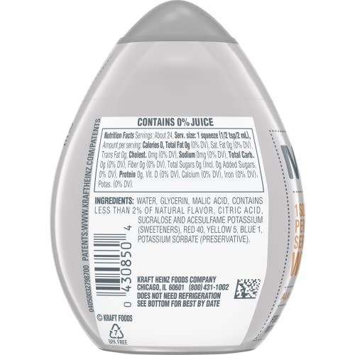 Details: Natural flavor with other natural flavor. 0 calories per squeeze. 0mg caffeine/serving. Makes 24 - 8 fl oz servings. www.kraftheinz.com. BPA free. MiO Naturally Flavored Sweet Tea Liquid Water Enhancer transforms plain water into a refreshing, flavorful iced tea to invigorate your day. A single squeeze of the bottle delivers a burst of satisfying herbal flavor. MiO sweet tea water flavoring with no sugar provides a burst of flavor with zero calories. The portable 1.62 fluid ounce bottle neatly fits in your purse, bag or glove box for easy on-the-go mixing. With just one squeeze, MiO sweet tea drink enhancer provides enough bold flavor for 8 fluid ounces! Whether you're studying, working or heading to workout, add MiO Sweet Tea to your water for a delicious instant sweet tea that keeps you sipping.