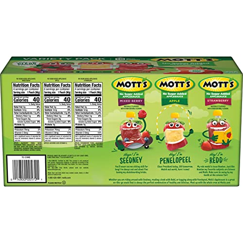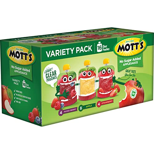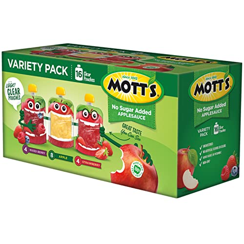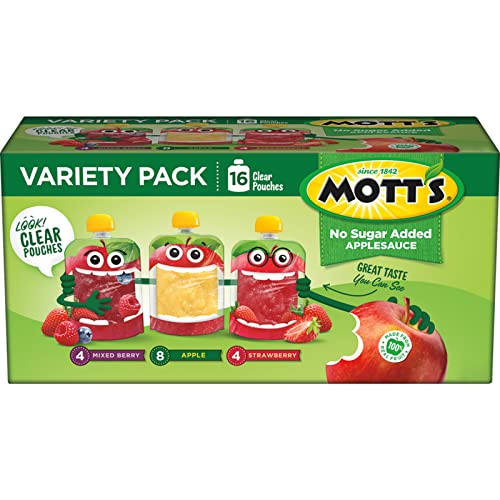 Mott’s No Sugar Added Applesauce Variety Pack, 3.2 Ounce Clear Pouch, 16 count (Pack of 4)