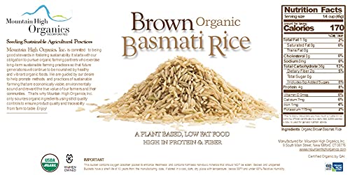 Mountain High Organics Certified Organic Brown Basmati Rice 6-Gallon Bucket