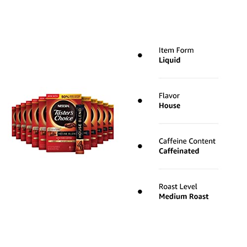 NESCAFE Taster's Choice, House Blend Light Medium Roast Instant Coffee, 12 boxes (72 packets)