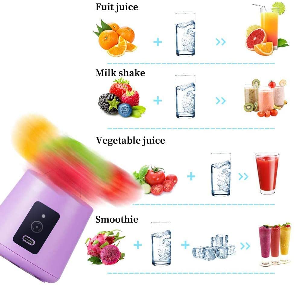 - [Small but Mighty Powerful] : SAMADEX Blender Build-in USB rechargeable, this powerful blender with 6-point stainless steel blades can produce 10-12 cups per charge. Simply charge via USB port 2-3 hours before initial use, then add your ingredients and power-on for a tasty smoothie or shake in 90 seconds. It can be charged by power bank, laptop, car charger or USB charger. Perfect for shakes and smoothies, protein shakes, juice, yogurt, dressings etc.